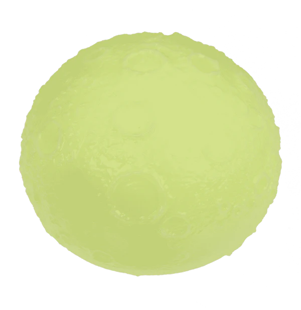 Wie der Mond ist auch dieser große Mondball mit taktilen Kratern versehen - aber er ist superweich, knautschbar und leuchtet im Dunkeln! Der Ball eignet sich hervorragend bei Stress jeglicher Art und dient der Beruhigung. Nicht für den Mund geeignet. Nicht für Kinder unter 3 Jahren. Durchmesser: ca. 10 cm.