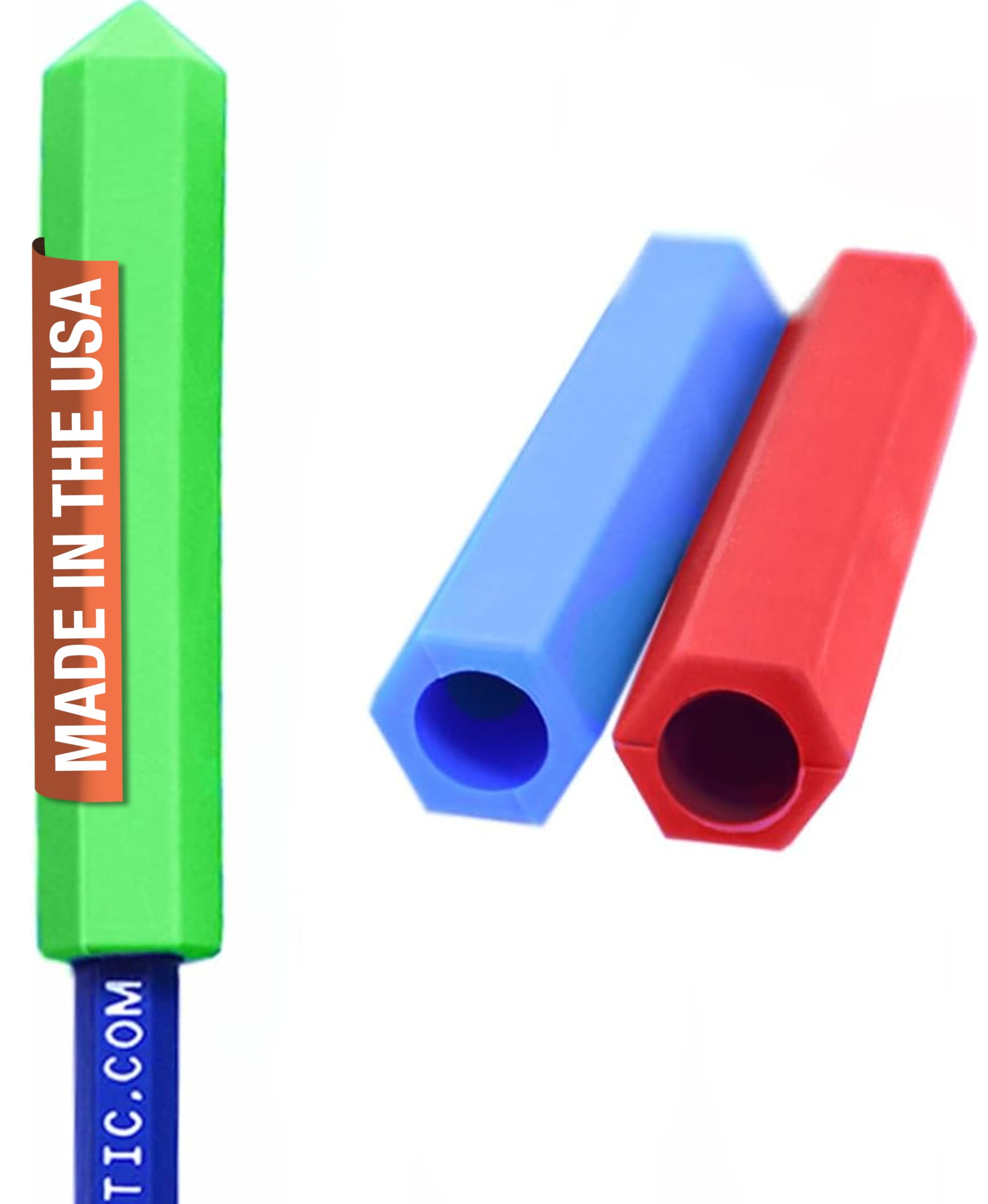 Mit Hilfe der Krypto Stifte-Topper ist gewährleistet, dass Menschen mit Kaudrang auf sicheren und ungiftigen Materialien kauen. Dadurch wird auch die Fokussierung wesentlich verbessert. Der Krypto Stifte-Topper passt auf alle Standardbleistifte (Größe 2, 0,7 cm) und bietet eine beruhigende Kaufläche, die das Gewicht des Stiftes leicht erhöht und somit die richtige Handhabung unterstützt. Mit einer Länge von etwa 6 cm und einem Durchmesser von 1,1 cm sind die Aufsätze perfekt für Kinder ab 6 Jahren geeignet. Sie bestehen aus hochwertigen Materialien und sind frei von Weichmachern (Phthalate), PVC, BPA und Latex. Außerdem sind sie robust und langlebig, obwohl regelmäßige Überprüfungen empfohlen werden. Hergestellt in den USA und spülmaschinenfest bis 75°C. Geeignet für Kinder ab 6 Jahren.