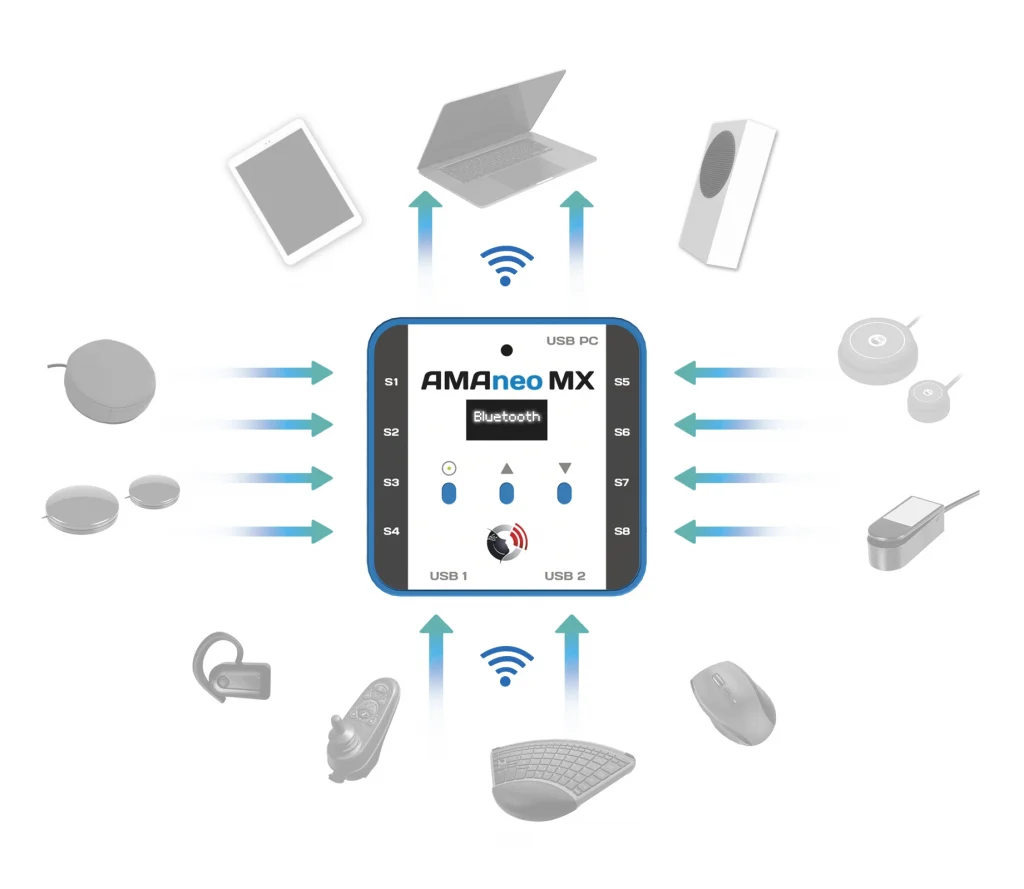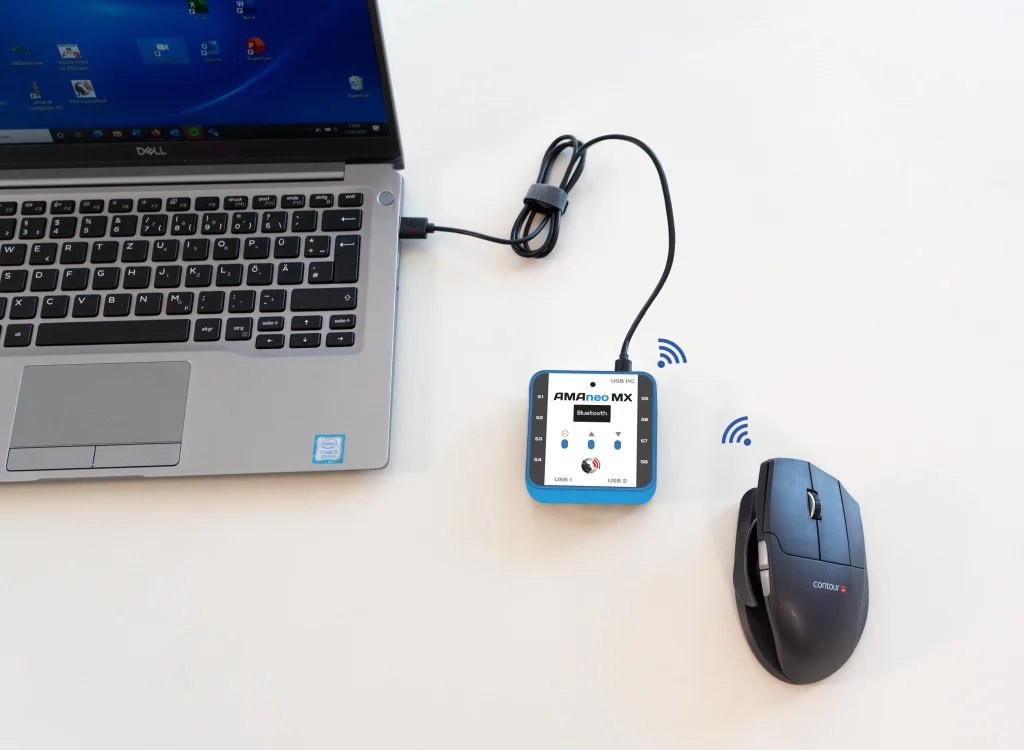 Die Bedienung von PC, iPad oder iPhone kann für Menschen mit motorischen Einschränkungen (wie z.B. Parkinson) zur großen Herausforderung werden. Der AMAneo MX bietet für unterschiedliche Anforderungen intelligente Lösungen in einem Gerät!- Ob als Tremorfilter für die Mau bei unruhigen Handbewegungen, zur Umwandlung einer Bluetooth-Maus in einen Joystick für Spiele oder als Schaltbox für Tasten auf einem Tablet oder Notebook – AMAneo MX hat die passende Lösung. Auch eigene Profile für individuelle Lösungen können ganz einfach erstellt werden.