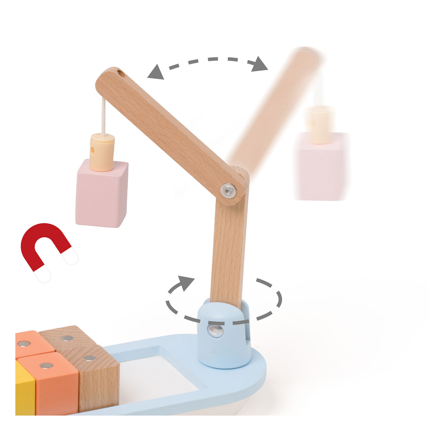 Wie von Zauberhand können die bunten Container mit dem Kran be- und entladen werden! Denn jeder der Container ist magnetisch und lässt sich mit dem Kran anheben. Das fördert die Phantasie und Feinmotorik und bietet stundenlangen Spielspaß!