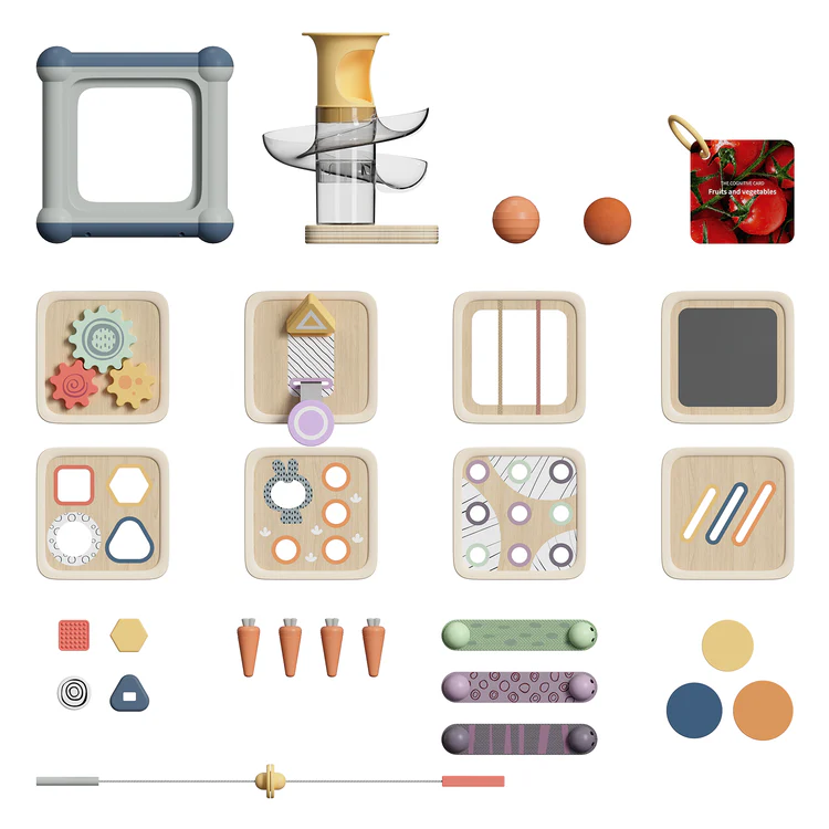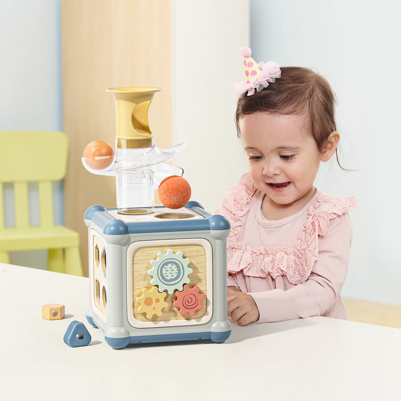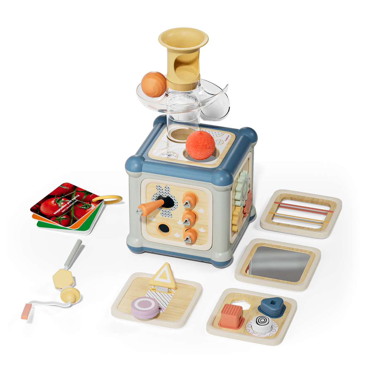 Multifunktionales Spielzeug mit austauschbaren Würfelseiten für jede Menge Feinmotorik-Herausforderungen