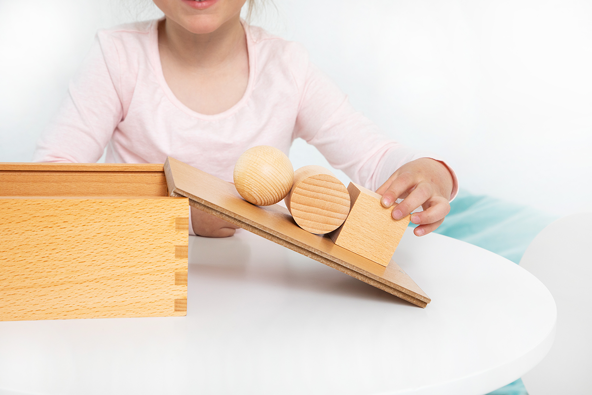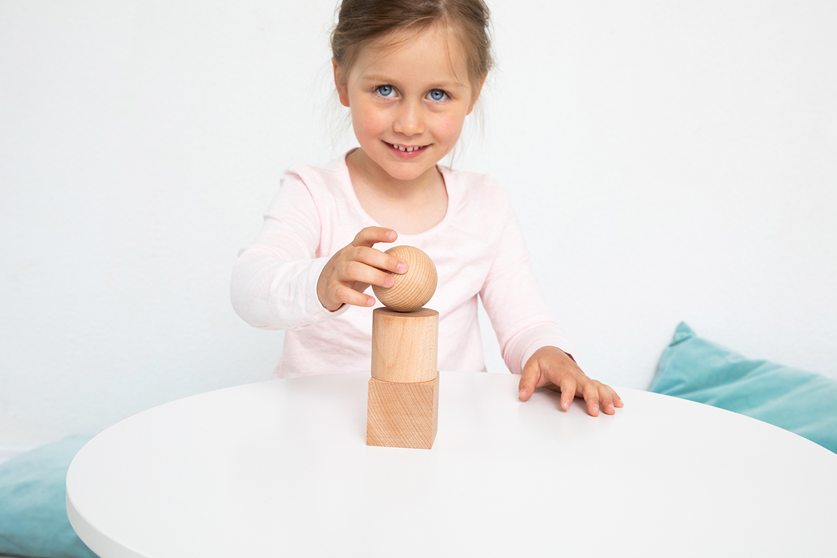 Das erste Spielzeug eines Kindes ist nach Fröbel der Ball. Mit der „Spielgabe“ 1, den sechs Wollbällen, wird das kindliche Interesse durch Bewegung geweckt. Mit dem Ball kann das Kind in die Welt der Bewegung hineinfinden. Durch den Nachahmungstrieb inspiriert, kann es die eigene Geschicklichkeit entwickeln. Die 2. „Spielgabe“ - die berühmteste von Fröbel - enthält eine Kugel, eine Walze und einen Würfel. Es geht darum die schiefe Ebene und die Eigenschaften dieser drei Figuren spielerisch kennenzulernen. Die Bausteine laden die Kinder zum Experimentieren ein.
