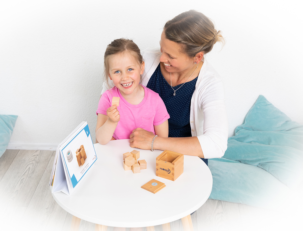 Die Baukästen enthalten von einfachen Körpern wie den Würfeln bis hin zu Viertelwürfeln und Dreiecksprismen verschiedene Formen, die aufeinander in ihrer Schwierigkeit aufbauen. Insgesamt gibt es fünf verschiedene Baukästen. Diese sind generell so angelegt, dass sie das Kind durch ihre elementaren Formen zum Spielen, Experimentieren und Konstruieren anregen. Mit den Spielgaben 3 bis 6 lassen sich neben Lebensformen, auch Schönheits- und Erkenntnisformen konstruieren. Um die pädagogischen Aspekte aus Fröbels Zeiten in das 21. Jahrhundert zu transportieren, können die Kinder Materialien aus der heutigen Zeit verwenden, um die Spielgaben kreativ zu ergänzen.