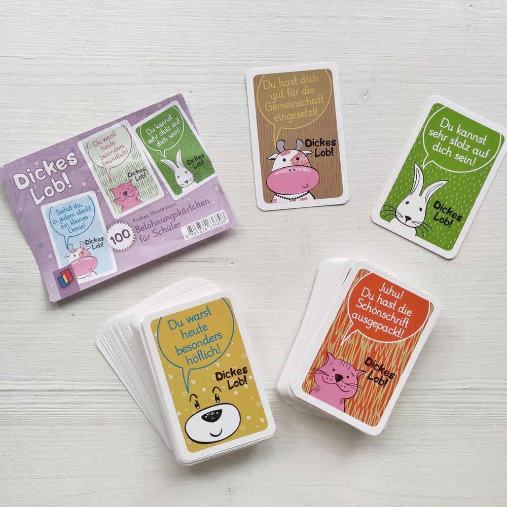 Jedes Kärtchen schließt mit einer Anerkennung, sodass die Kinder genauso strahlen werden wie die Tierchen auf ihrem Lobkärtchen