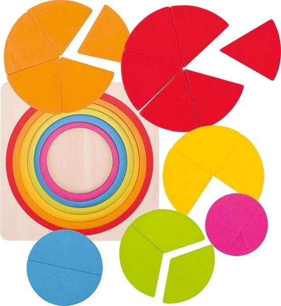 Mit dem Kreisschichtenpuzzle aus Holz werden die Aufteilungsmöglichkeiten des Kreises spielerisch vermittelt.