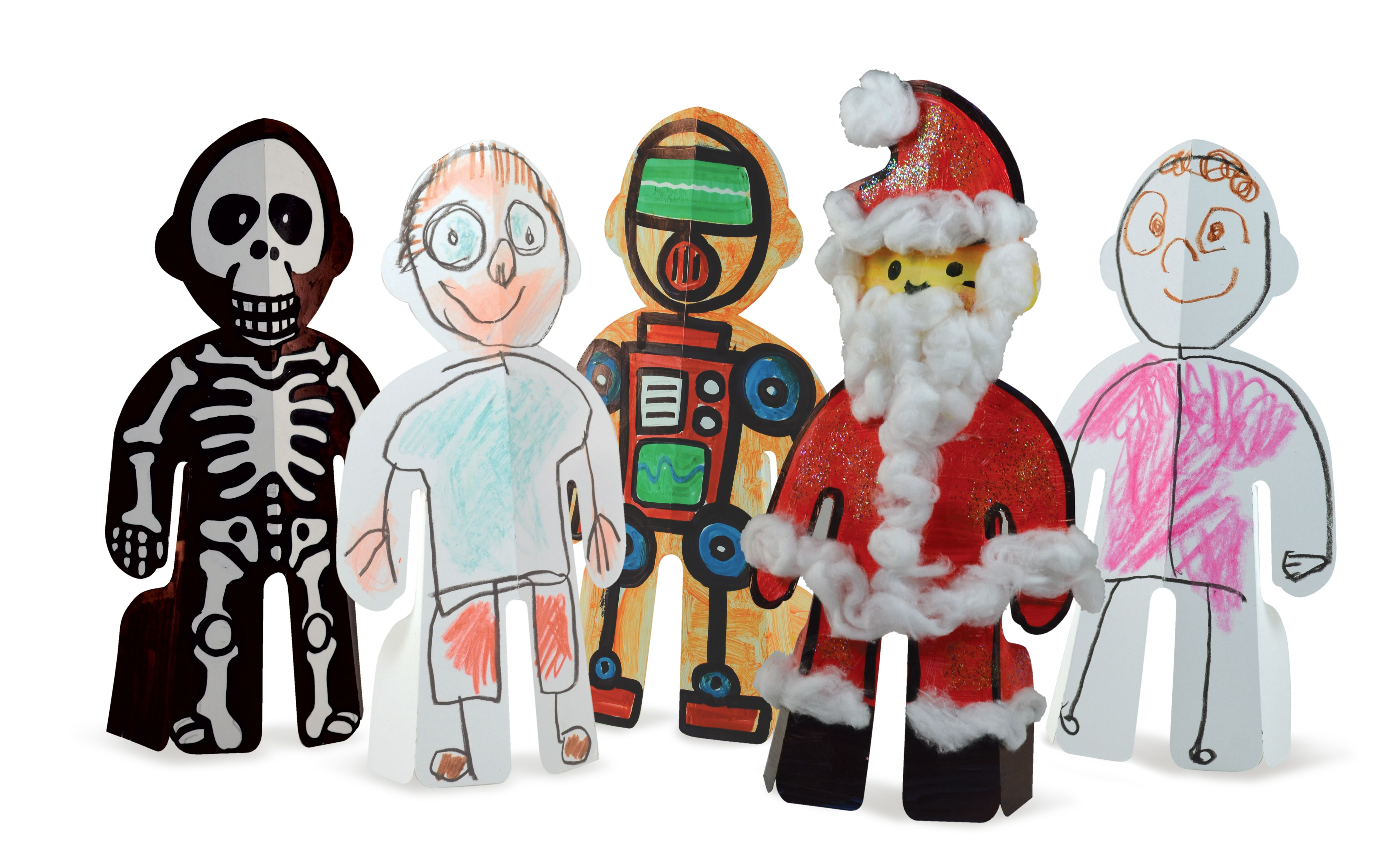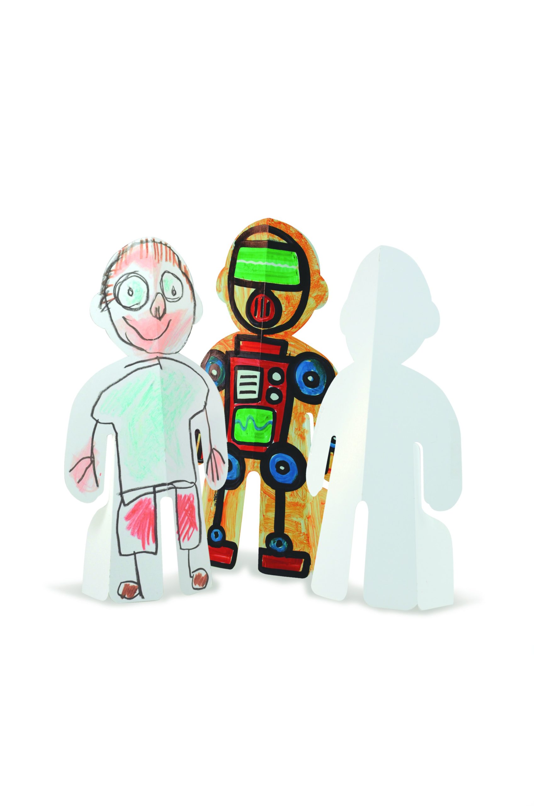 Dank des einfachen und cleveren Designs kann mit diesem Set jedes Kind jeder Figur einen einzigartigen Charakter verleihen. Nach dem Gestalten einfach die Beinlaschen umfalten und die Figur aufstellen! Mit einem Foto kann ein Selbstporträt gestaltet werden. Die Aufstellfiguren regen nicht nur die künstlerische Ausdruckskraft an, sondern eignen sich auch hervorragend für verschiedene Projekte, beispielsweise zu den Themen „Ich selbst" oder Naturwissenschaften. Das Set besteht aus 50 Figuren mit einer Höhe von 29 cm.