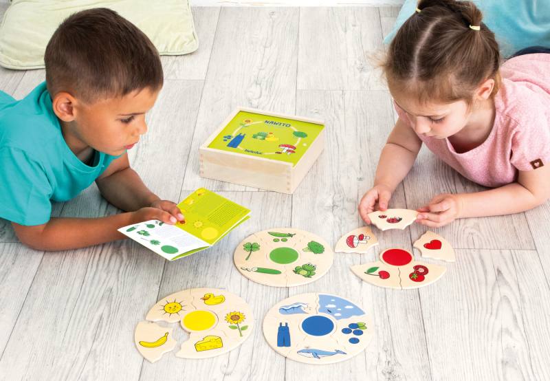 Dieses 24-teilige Puzzle fördert das logische Kombinieren, die Kommunikation sowie das Verständnis rund um das Thema „Farben“ auf kindgerechte Art und Weise