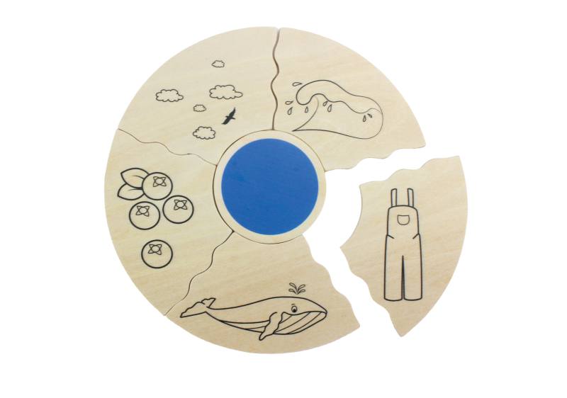 Mit diesem Puzzle lernen Kinder die vier Grundfarben Rot, Blau, Gelb und Grün kennen und benennen. Sie entdecken, welche Farben in der Natur und in ihrer Umgebung vorkommen. Welche Farbe haben Früchte, Gemüse, Tiere, Pflanzen oder Kleidung? Wie sieht der Himmel, das Meer oder die Wiese aus? Es gilt, alle Teile der richtigen Farbe zuzuordnen.
