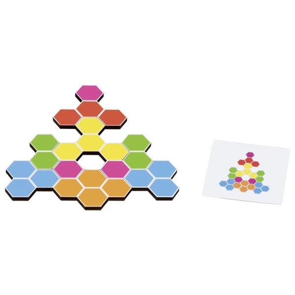 - Schwierig (blaue Wabenvorlage): Nur nach Form-Vorlage farblich richtig kombiniere