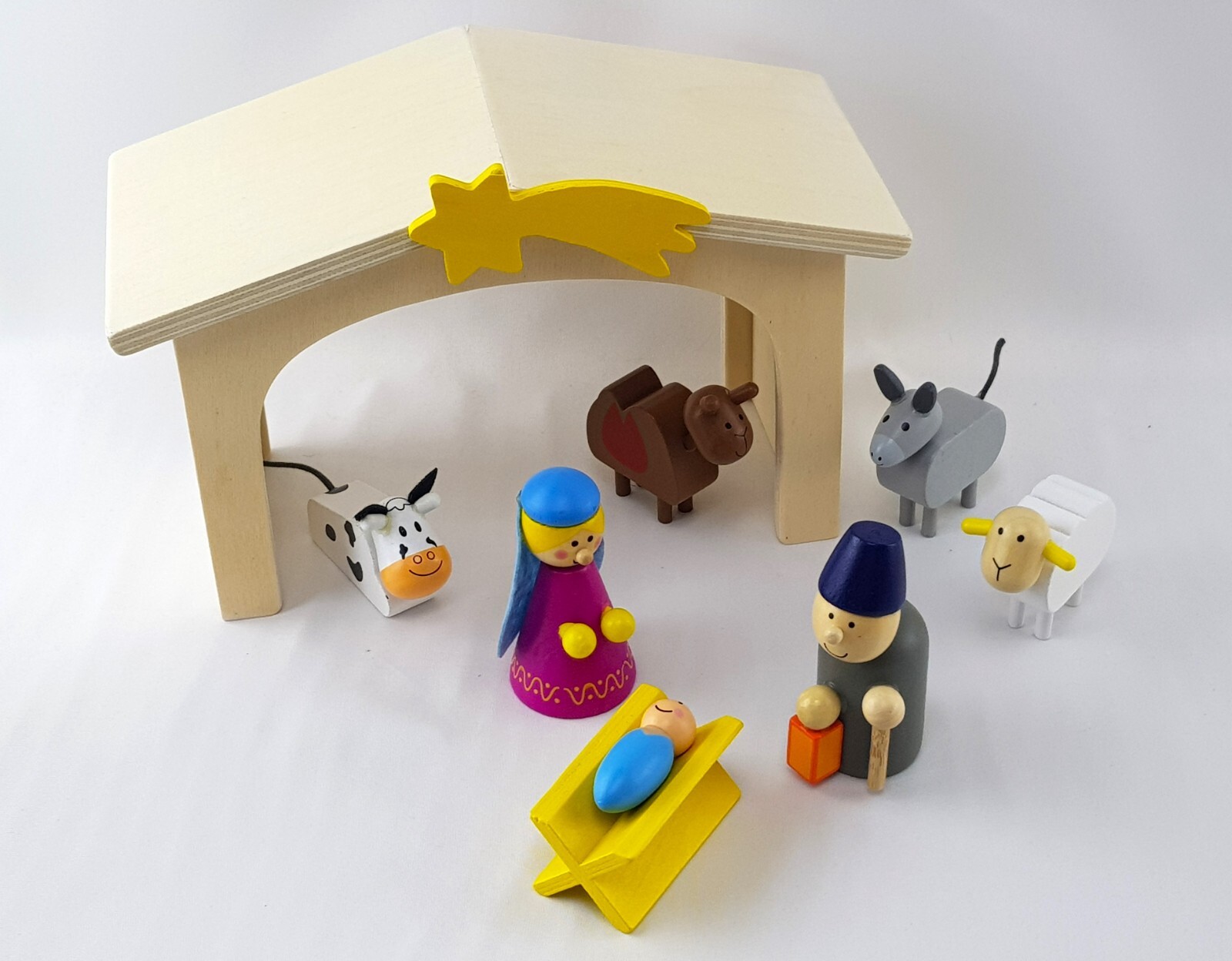 In diesem kindgerechten Krippen-Set finden sich alle wieder, die unbedingt zu Weihnachten gehören: das Christkind, Maria und Josef, die Tiere, der Engel und die drei Weisen aus dem Morgenland. Ideal zum Spielen und Nachspielen aber auch zum Dekorieren. Größe des Stalles: 23 x 11,5 x 16 cm. Höhe einer Figur (Josef): 9 cm.