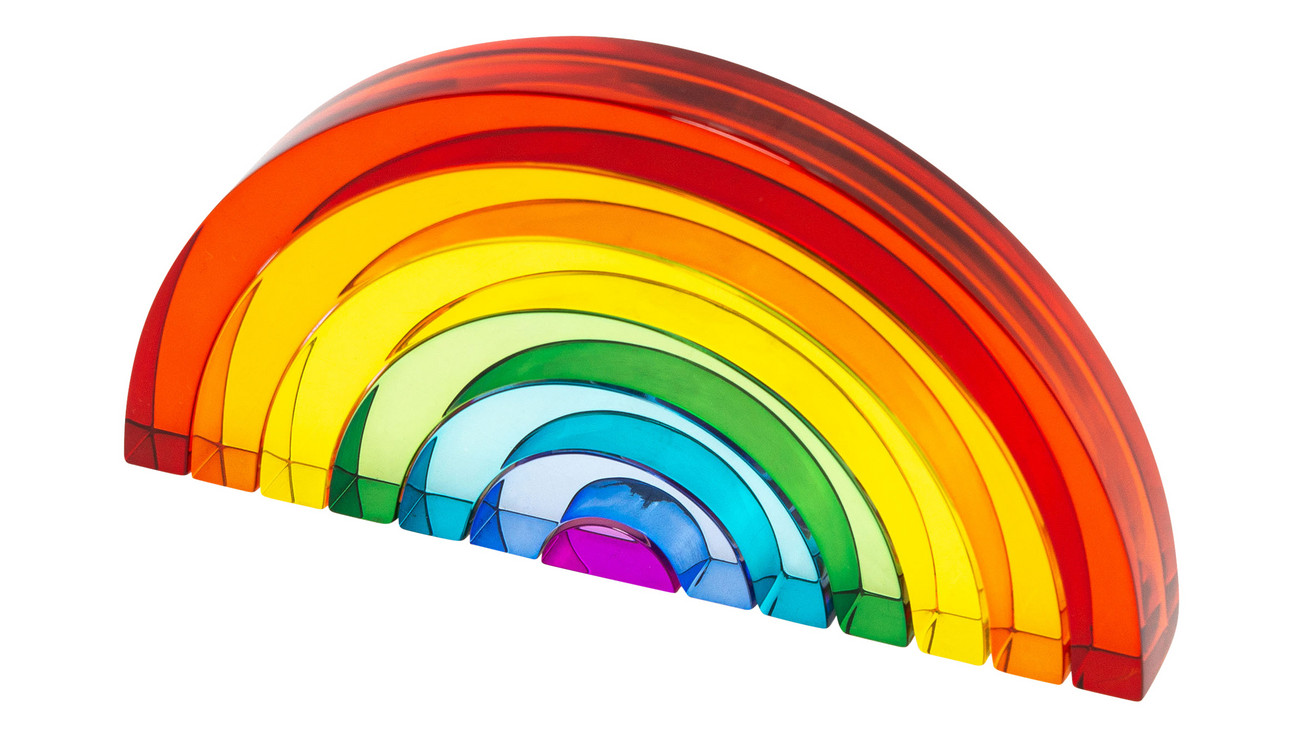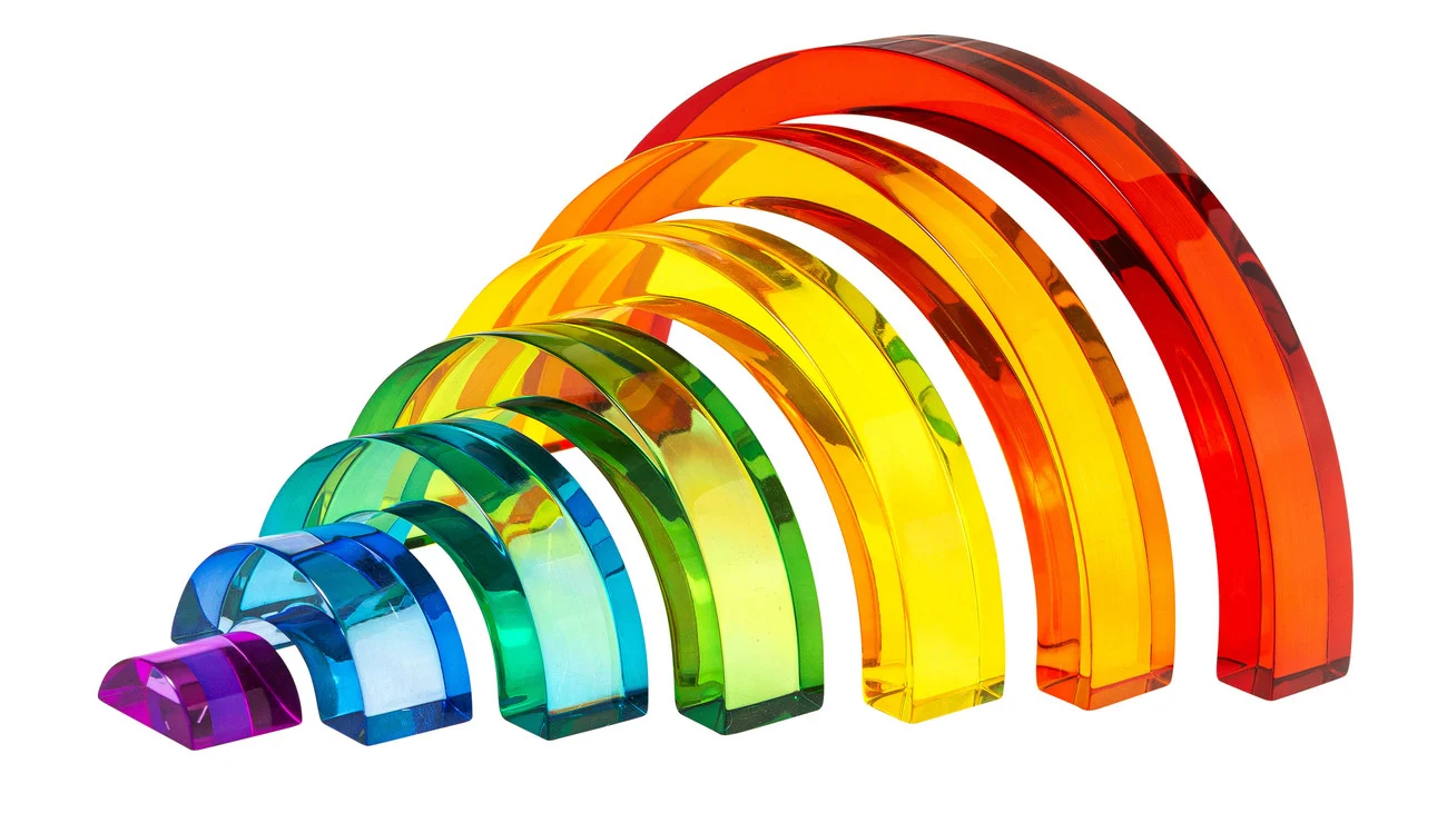 Die hochwertig hergestellten Steine sind ein optisches Highlight und regen zum phantasievollem Spiel - mit und ohne Leuchttisch - an. Besonders faszinierende Farbeffekte entstehen, wenn sich die Regenbogenbausteine überschneiden. Die bunten Elemente können der Größe nach aufgebaut und die Farben benannt werden. Sie sind besonders robust und liegen gut in der Hand. Kinder können sie stapeln, einen Regenbogen bauen oder als Tunnel einsetzen, was vielfältige Spiel- und Lernmöglichkeiten eröffnet. So inspirieren die Acrylo Regenbogen-Bausteine Kinder zu fantasievollen Bauwerken und Mosaiken.