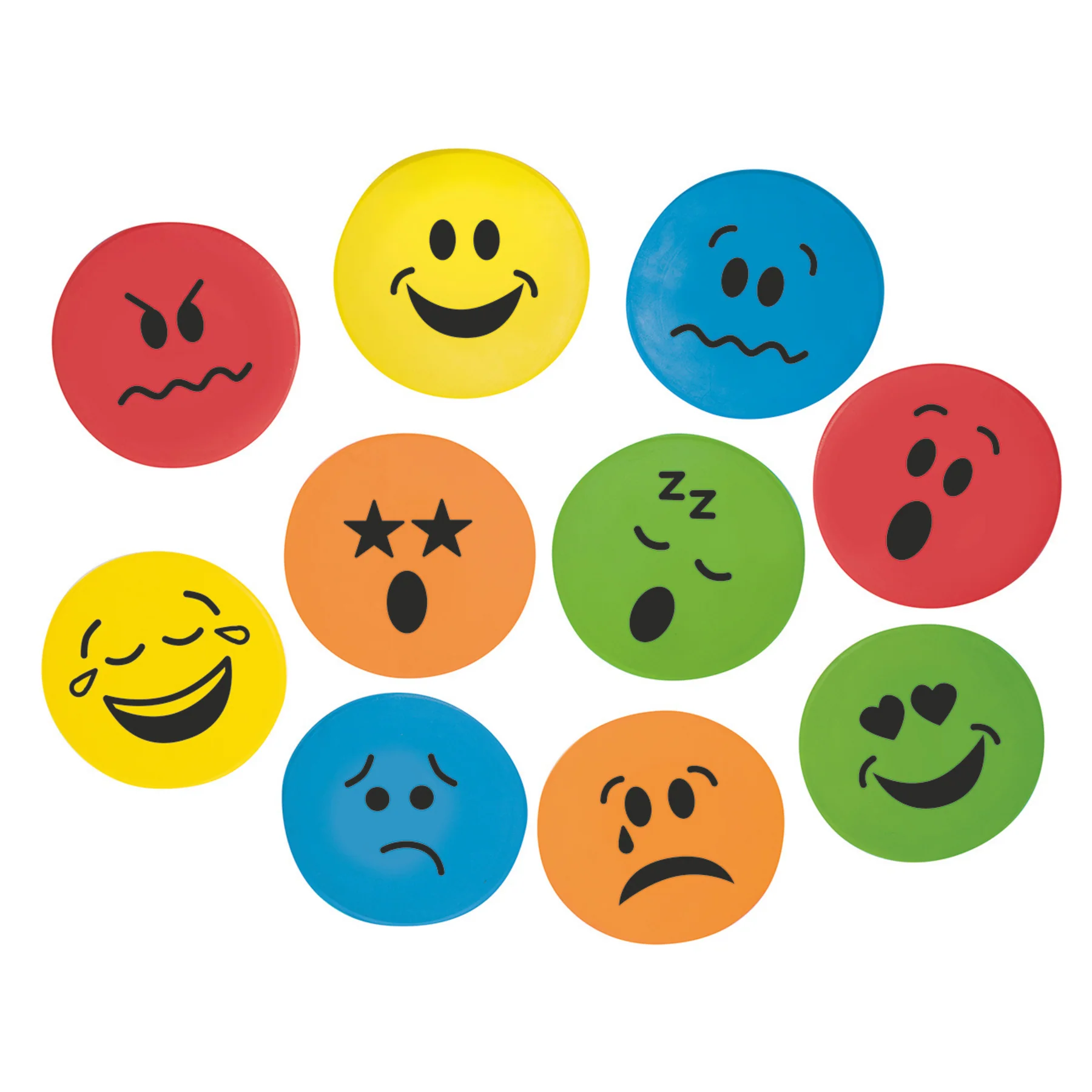 Die praktischen Bodenplatten im 10er-Set zeigen jewqeils unterschiedliche Gefühlsausdrücken – von Lachen bis Zorn! Ideal für lustige Spiele, Gespräche über Gefühle oder zum kreativen Üben des emotionalen Verständnisses. Sowohl für drinnen als auch draußen geeignet. Oberseite glatt, Unterseite genoppt. Mühelos wieder zu entfernen.