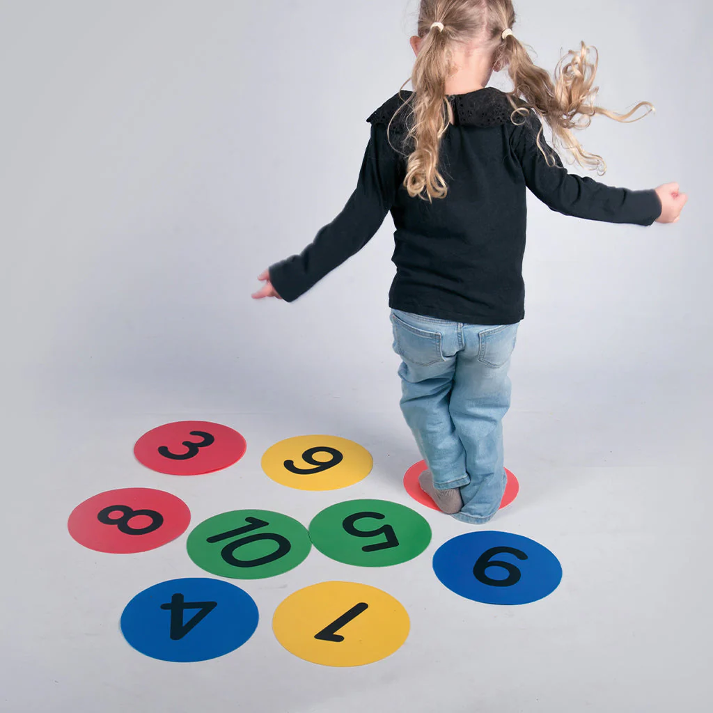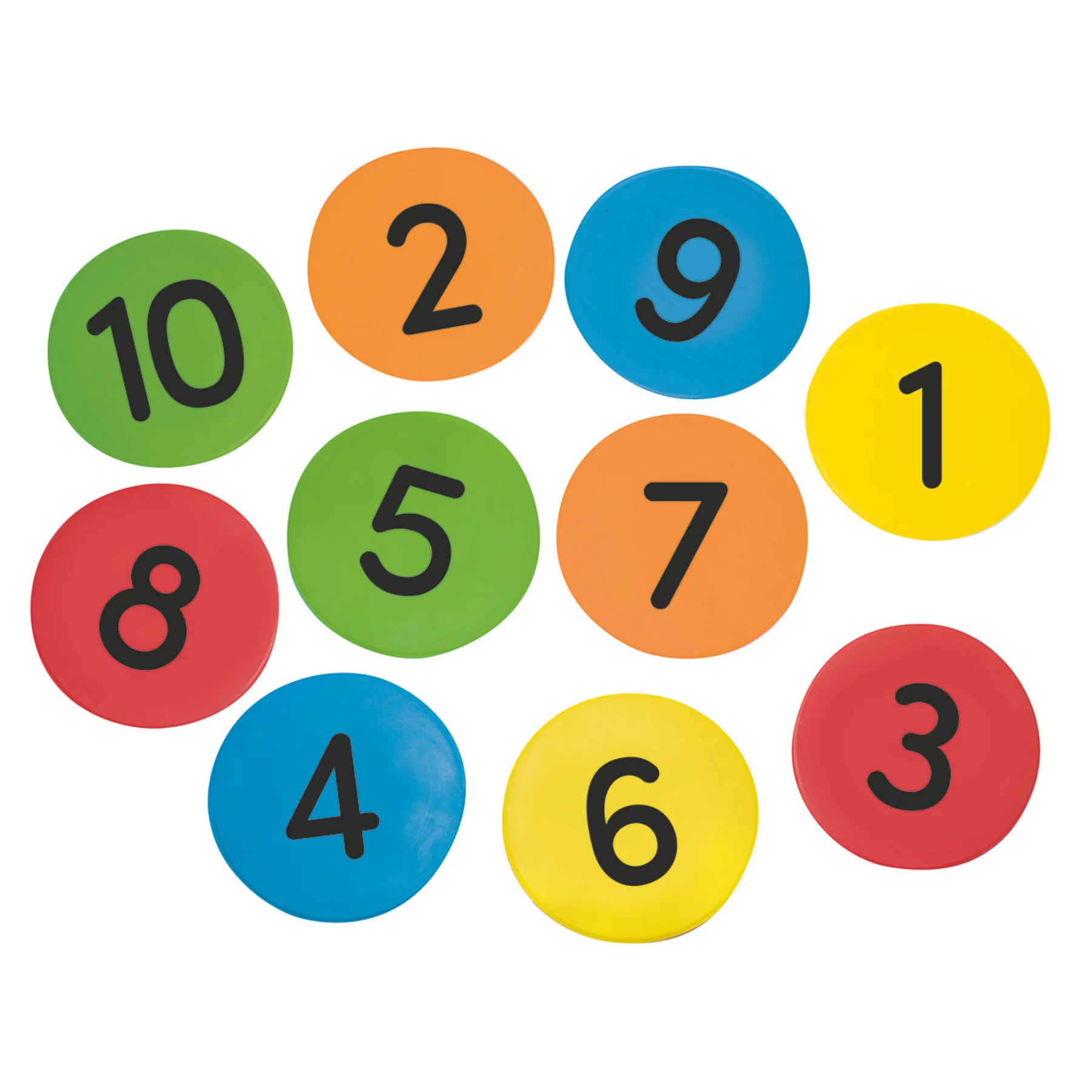 Zählen macht Spaß und lässt sich in viele tolle Spiele einbinden! Ganz besonders, wenn man große runde Platten mit den Zahlen einsetzen kann! Die praktischen Bodenmarkierungsplatten mit den Zahlen 1–10 sind ideal für Spiele, Training und pädagogische Aktivitäten. Verwenden Sie sie für lustige Hindernisparcours, Zahlenspiele oder zum kreativen Üben des Zählens.