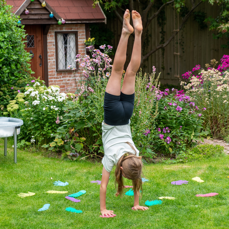 Mit diesem Set aus 20 strukturierten Silikonmatten in Hand- bzw. Fußform werden Bewegung und sensorisches Spielen zu einem spannenden Erlebnis.