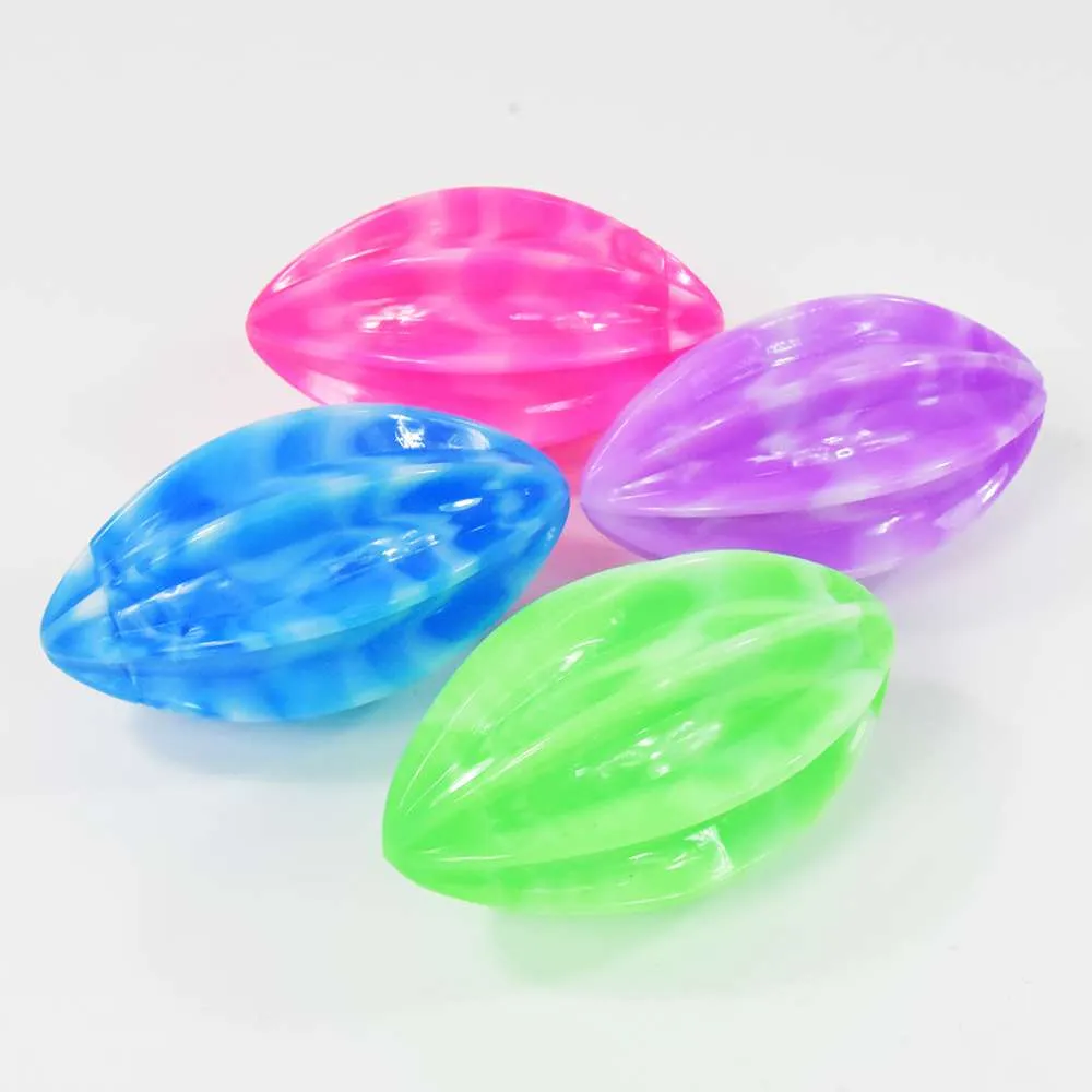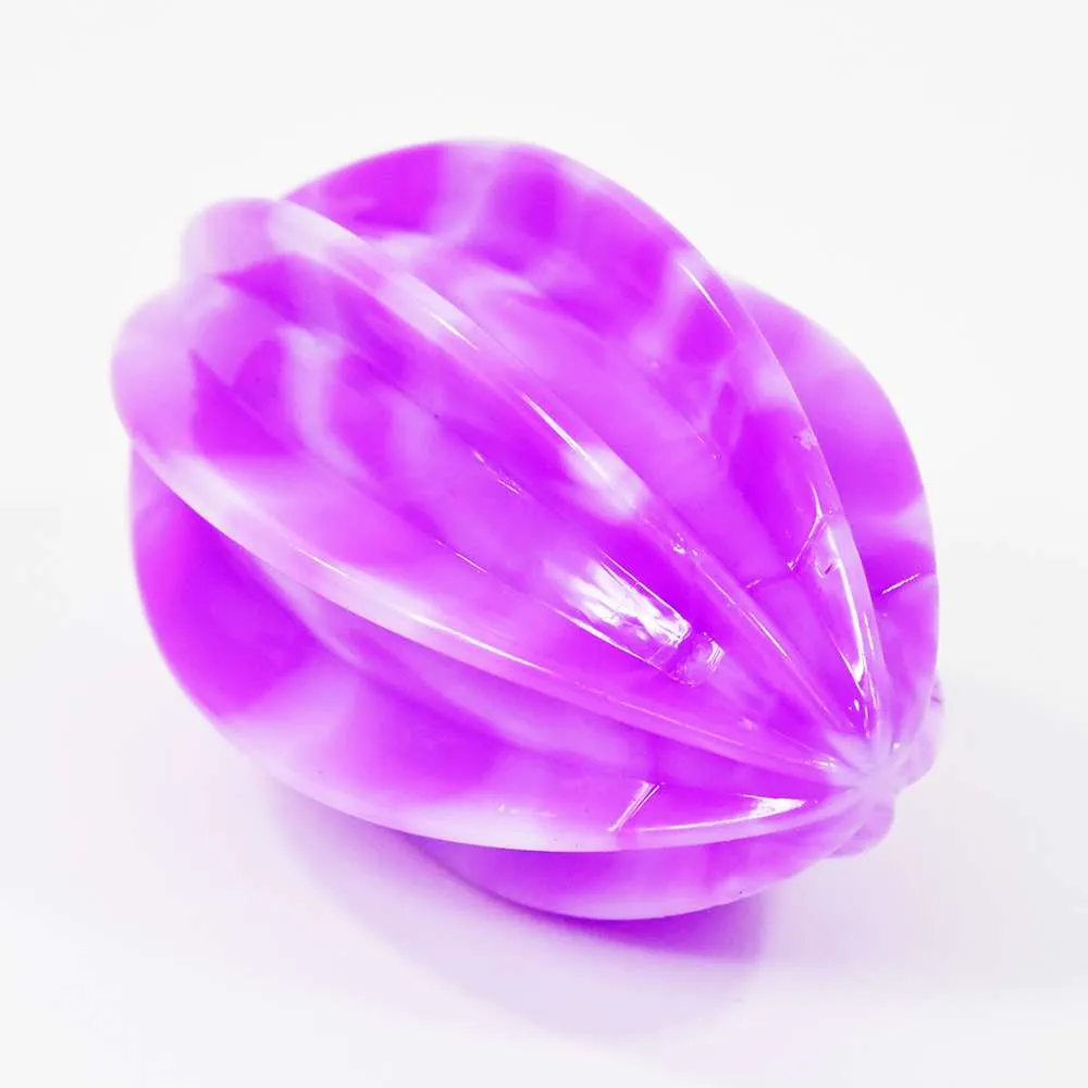 Die Form dieses Balls ist der tropischen Sternfrucht nachempfunden. Bei Aufprall beginnt die LED im Inneren des haptisch interessanten Springballs zu blinken.