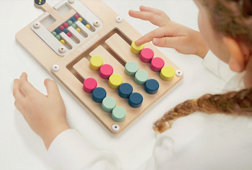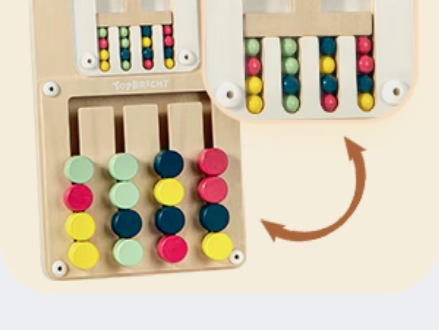 Hier wird geschüttelt und getüftelt! Im oberen Fenster können die bunten Kugeln wild geschüttelt und dann mit dem Holzstab fixiert werden. Dann gilt es, das entstandene Muster mit den bunten Schiebesteinen unten nachzubauen. Klingt einfach? Manchmal steckt der Kniff im Detail – und genau das macht den Reiz aus. Ganz nebenbei trainieren Kinder ihre Hand-Augen-Koordination, ihr logisches Denken und ihre Feinmotorik. Ob zuhause, unterwegs oder auf Reisen – das robuste Holzspielzeug ist leicht, handlich und sorgt überall für abwechslungsreiche Beschäftigung. Der bunte, hochwertig aus Holz hergestellte Farben-Shaker sorgt überall für fröhliche Köpfe und flinke Finger!