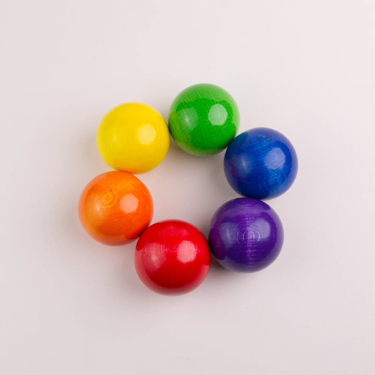 6 Stück bunt polierte Holzkugeln, Durchmesser 50 mm.