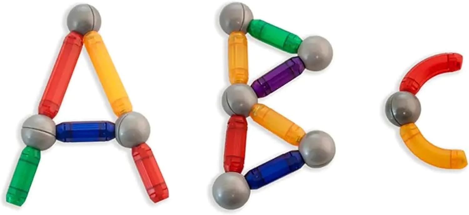 Was ist spannender als mit Magneten zu bauen? Besonders, wenn die großen Kunststoffteile mit ihren magnetischen Enden so stabil und gut im Griff liegen, dass sie auch für Kinder und Menschen mit Bewegungseinschränkungen ideal sind! Dank der vielen Möglichkeiten, Blöcke zu verbinden und Strukturen zu schaffen, werden hier alle kreativ und zu echten Erfindern und Ingenieuren! Die Magnetkugeln ermöglichen ein einfaches Anbringen der Magnestäbe, was das Spielerlebnis problemlos gestaltet. Mit verschiedenen Stücken, darunter 10 große Stäbe, 12 kleine Stäbe, 4 Kurven in den Farben Rot, Blau und Grün und 10 Kugeln in silber, bietet dieses Set endlose Möglichkeiten für kreativen Spielspaß.
